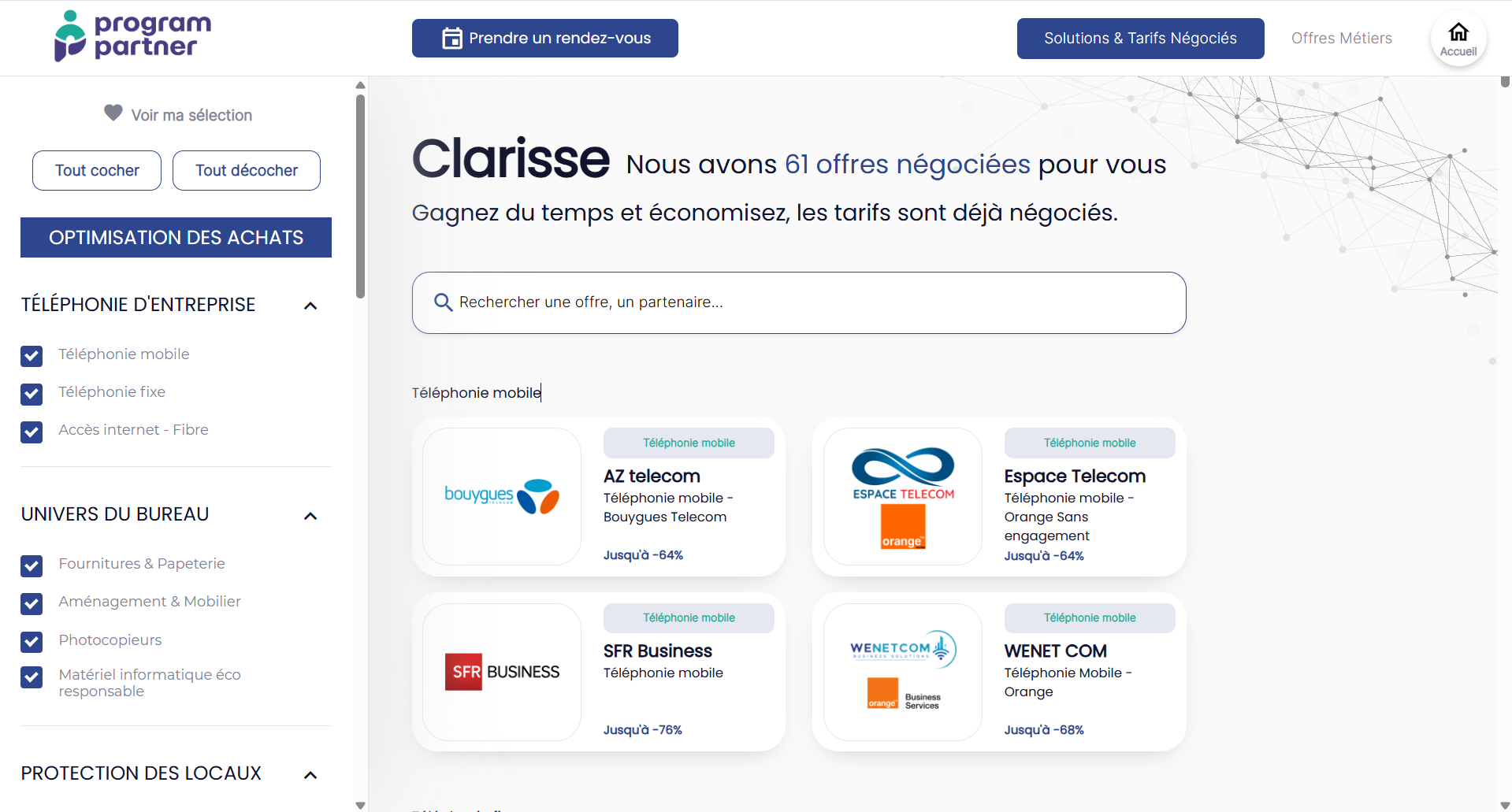 En mutualisant les volumes d’achat et en sélectionnant des partenaires généralistes et spécialisés, Program Partner vous donne accès à :